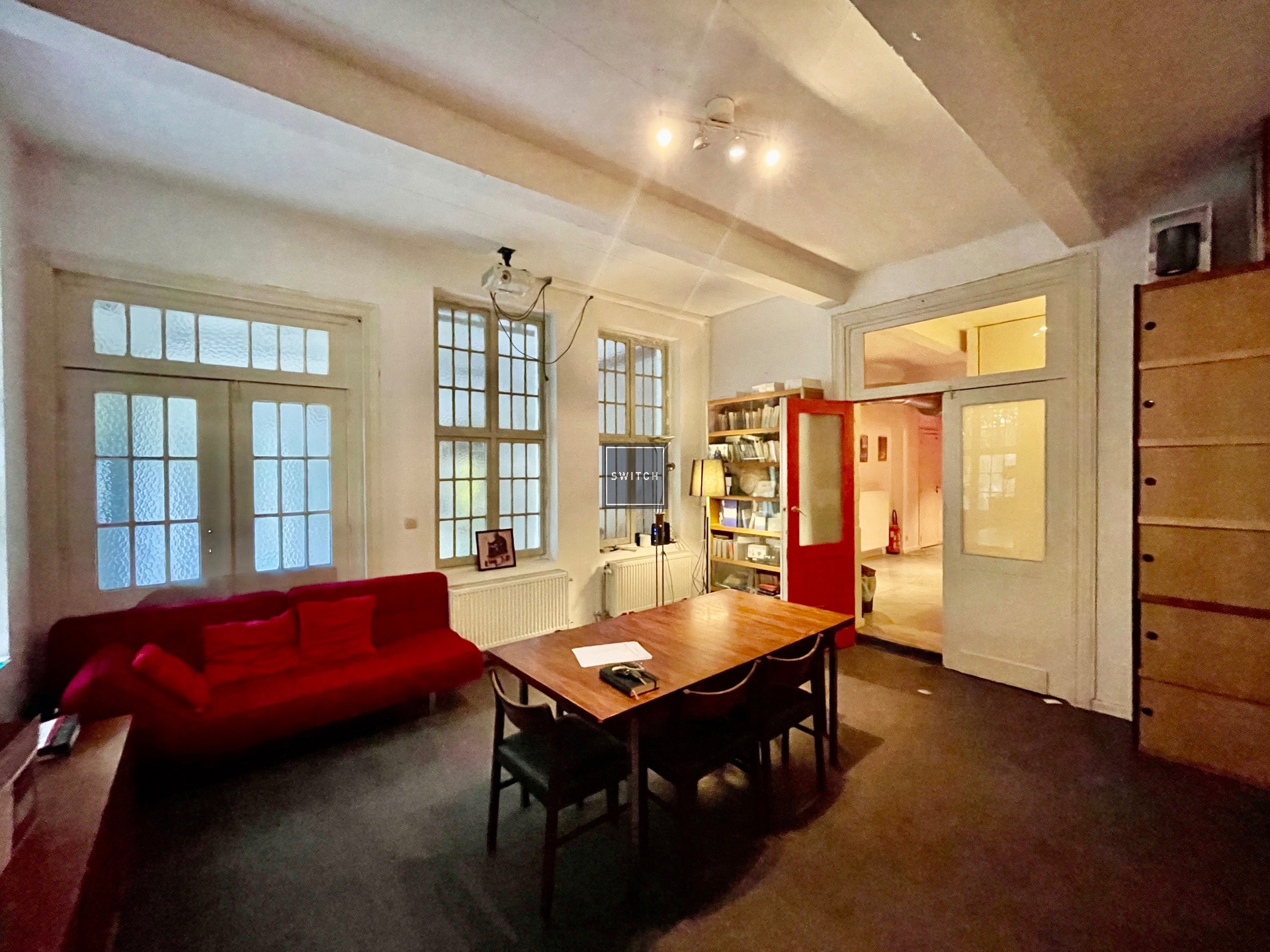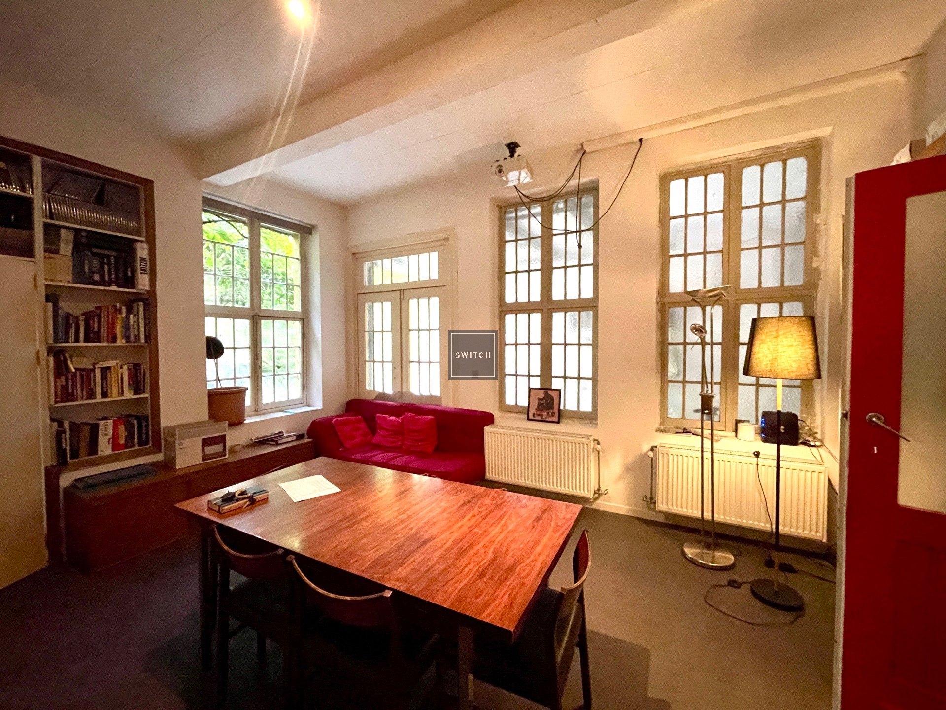 Bruxelles Laeken - Bureaux charmants avec belle cour et potentiel d’aménagement. Situé en arrière-cour pleine de charme, ce bureau d’une superficie d’environ 145 m² offre un cadre de travail agréable et lumineux.L’espace se compose actuellement d’un bureau en façade arrière, d’une spacieuse salle de réunion ainsi que d’un couloir desservant cinq bureaux individuels. L’ensemble est en bon état général, avec un aménagement soigné et fonctionnel. Il offre également une flexibilité d’aménagement, permettant de réorganiser l’espace en open space selon vos besoins. Un coin repas est disponible à l’intérieur et à l’extérieur, offrant un cadre agréable pour les pauses. Cet espace est idéal pour une profession libérale ou une petite PME, alliant charme, flexibilité et fonctionnalité. Infos & visite : 0489 311 000 www.switchimmo.com